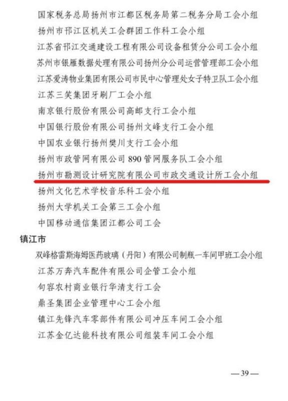 近日,江蘇省總工會(huì)印發(fā)《關(guān)于表彰江蘇省模范職工之家、模范職工小家、優(yōu)秀工會(huì)工作者的決定》,揚(yáng)州市勘測設(shè)計(jì)研究院有限公司市政交通設(shè)計(jì)所工會(huì)小組被江蘇省總工會(huì)授予“江蘇省模范職工之家”稱號(hào)。